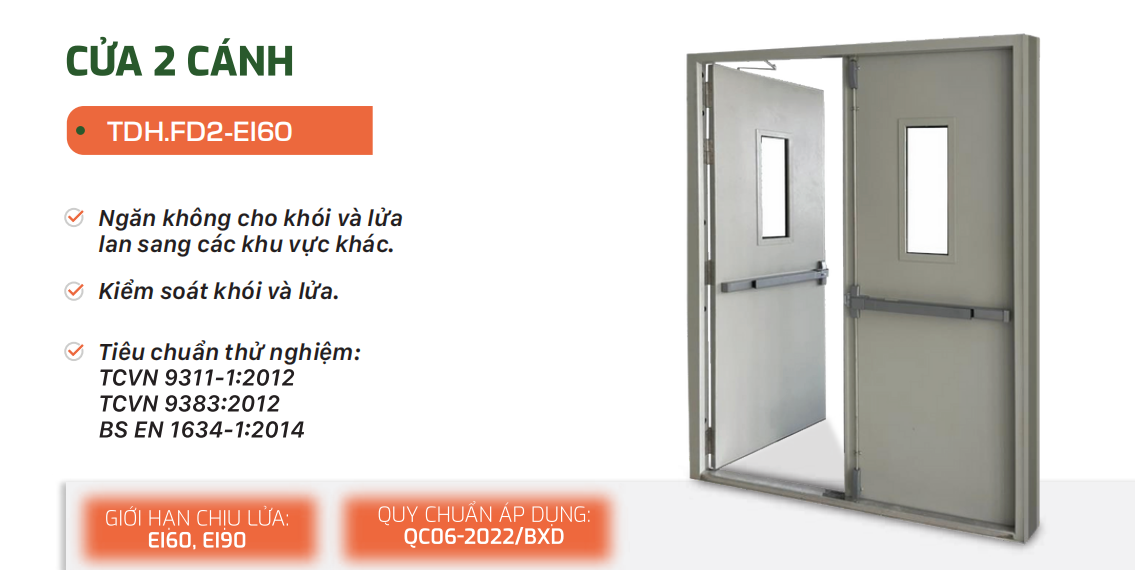 Hiệu năng sử dụng cao nhất : Thời gian chống cháy đến 60 phút tỷ trọng nhẹ nhất trong phân khúc cửa Ei60 tương đương cửa thép cách âm thông thường, khắc phục hoàn toàn tình trạng chung cửa rất nặng sử dụng lâu ngày có nguy cơ cánh bị kẹt, xệ khó đóng mở.