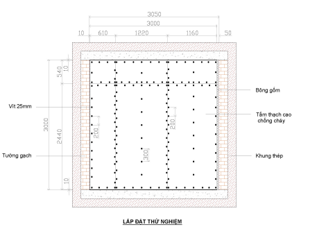- 2 mặt bọc 1 lớp thạch cao chóng cháy dày 15.9mm